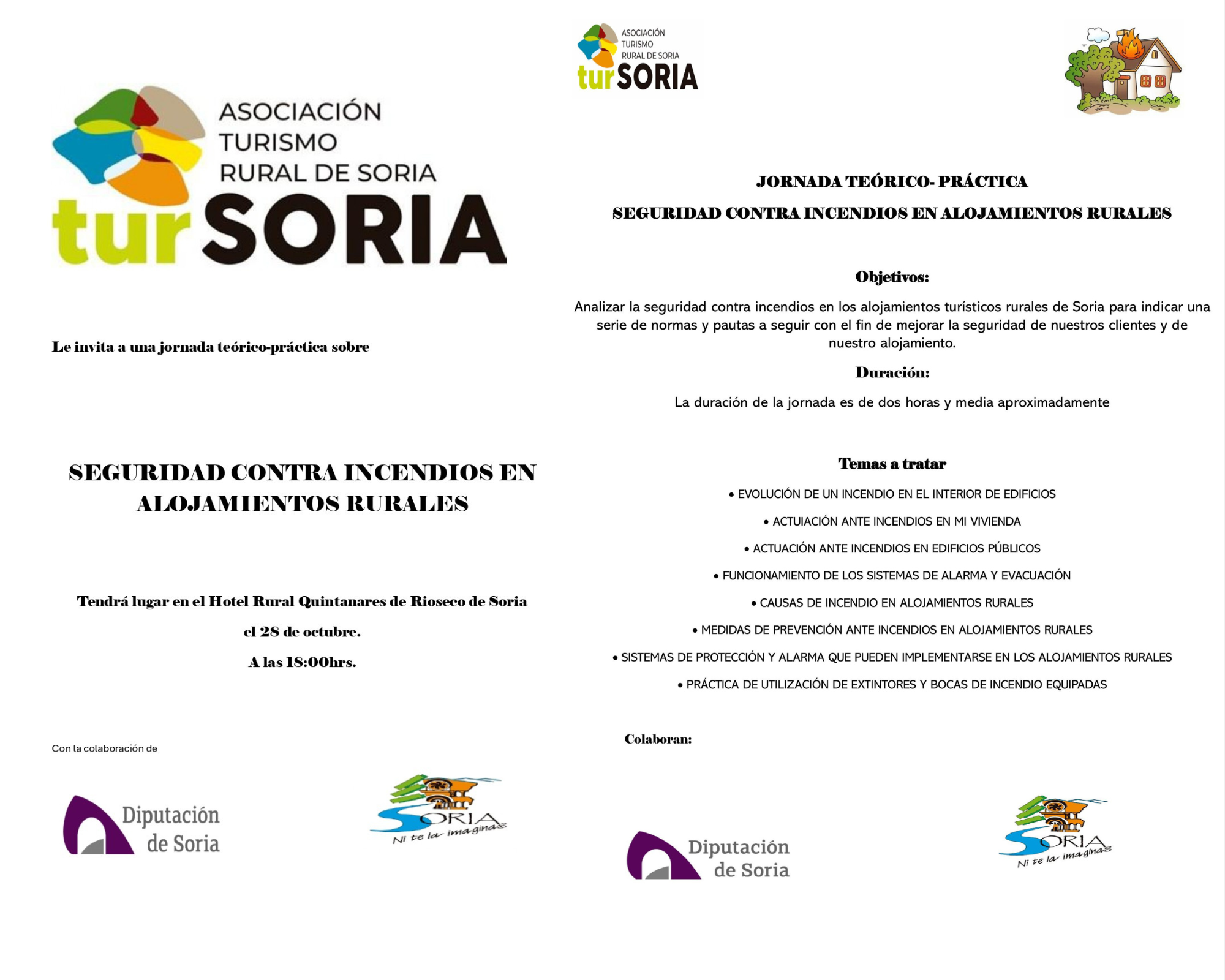 En turSORIA, seguimos comprometidos con la seguridad y el bienestar de nuestros visitantes y anfitriones rurales. Por ello, organizamos una jornada teórico-práctica sobre seguridad contra incendios en alojamientos rurales, dirigida a todos los propietarios y gestores de turismo rural de la provincia de Soria.