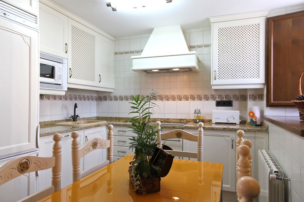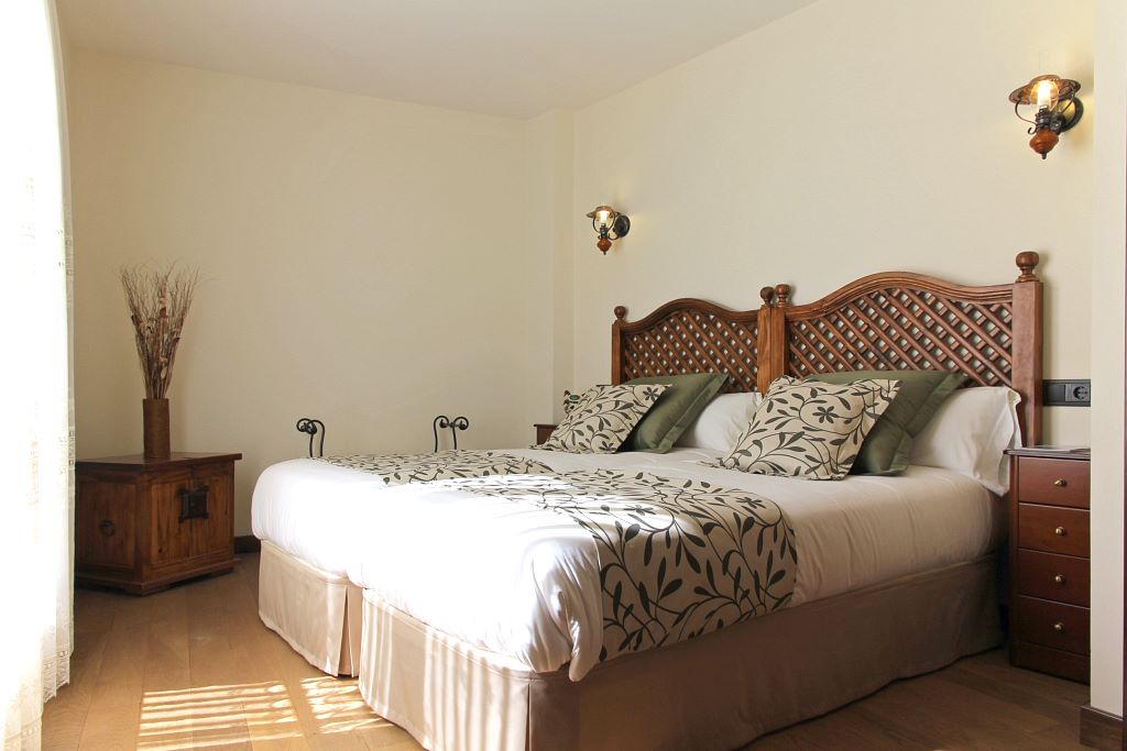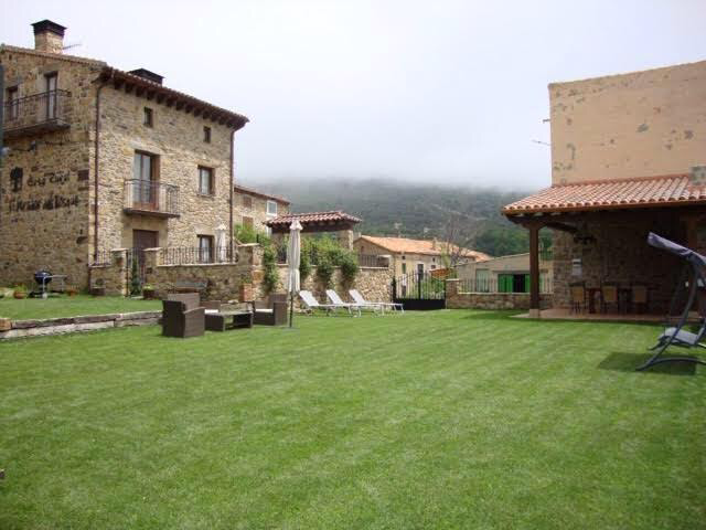 A través de una auténtica puerta castellana, se accede a un salón con una acogedora chimenea francesa, y una agradable decoración, en la que destaca un espectacular estuco veneciano, que te permiten sentirte como en casa y disfrutar de veladas inolvidables al calor de la lumbre. Al fondo de la planta baja, un dormitorio doble con baño, adaptado para minusválidos con salida a un patio interior, que permite respirar el aire puro de la sierra en un ambiente más íntimo.