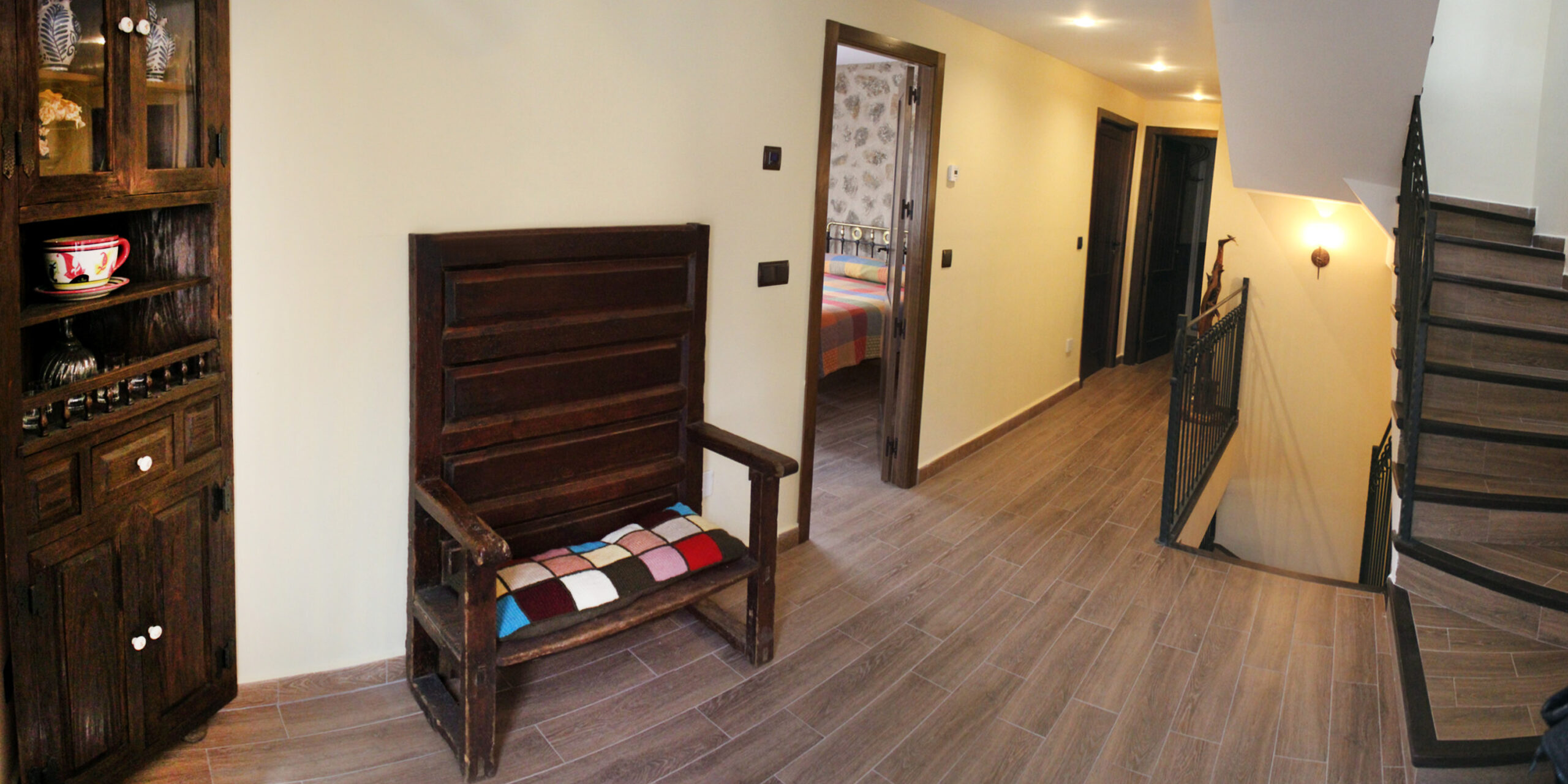 En su PRIMERA PLANTA dispone de tres habitaciones y un baño completo. Dos habitaciones son de matrimonio, y la tercera dispone de dos camas. Y en su SEGUNDA PLANTA cuenta con tres habitaciones dobles y un cuarto de baño completo.