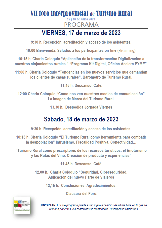 El viernes, abrirá el foro una charla coloquito sobre la aplicación de la transformación digital a nuestros alojamientos rurales y el programa Kit Digital de Acelera Pyme.